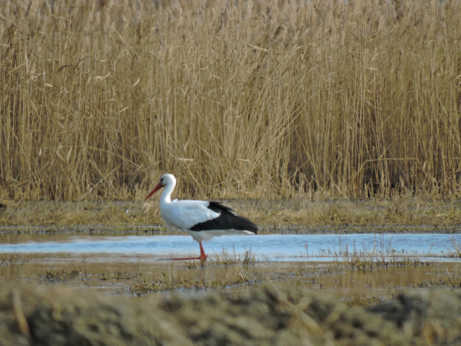 Il navigatore dice che ci siamo quasi: parcheggiamo la macchina, binocolo al collo e cannocchiale in spalla, e ci avviamo a piedi. E’ una domenica di cielo sereno, e la luce accecante, il giallo delle canne secche intorno, la pianura vuota di gente e piena di silenzio, il tepore del sole ti fanno chiedere se sia inverno o se sia agosto. Se non fosse per l’aria pungente e gli strati di vestiti addosso, ci si potrebbe davvero perdere nel tempo, qui.