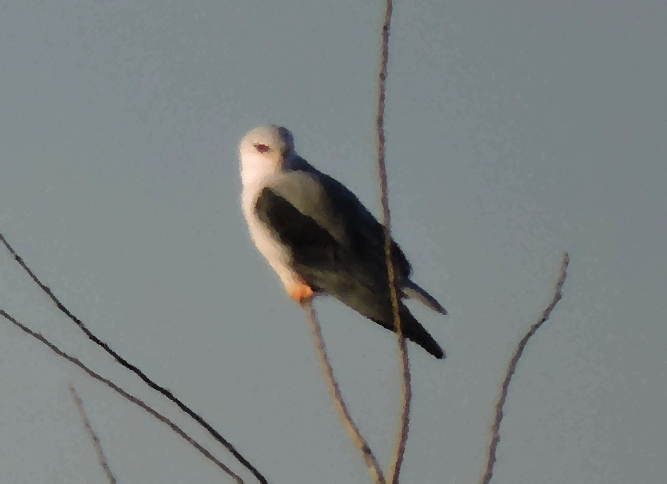 Quasi per abitudine, il binocolo punta verso un uccello posato lontano, che subito spicca il volo e si avvicina. La prima cosa che penso è che è un uccello che non ho mai visto. Almeno, mai prima di oggi. Quando si posa a breve distanza da noi, in cima ad un albero in luce perfetta, guardandoci dritti negli occhi, quasi quasi non ci crediamo, e scoppiamo a ridere: è ancora Lui! Alla faccia dei fotografi fermi da ore a cercarlo, il Nibbio Bianco ha voluto raggiungerci per un ultimo saluto!